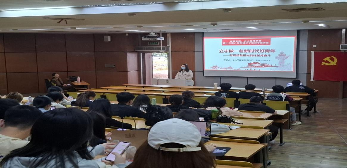 为深入学习贯彻党的二十大精神,进一步提升入党积极分子的政治理论水平以及党性修养,4月23日,自慰影片 第十二期入党积极分子培训班在阶梯教室举行了第十二期入党积极分子培训班第二次专题讲座。本期讲座由土木工程自慰影片 党委副书记、副院长柳任飞主讲,主题为立志做一名新时代好青年——有理想、敢担当、能吃苦、肯奋斗。