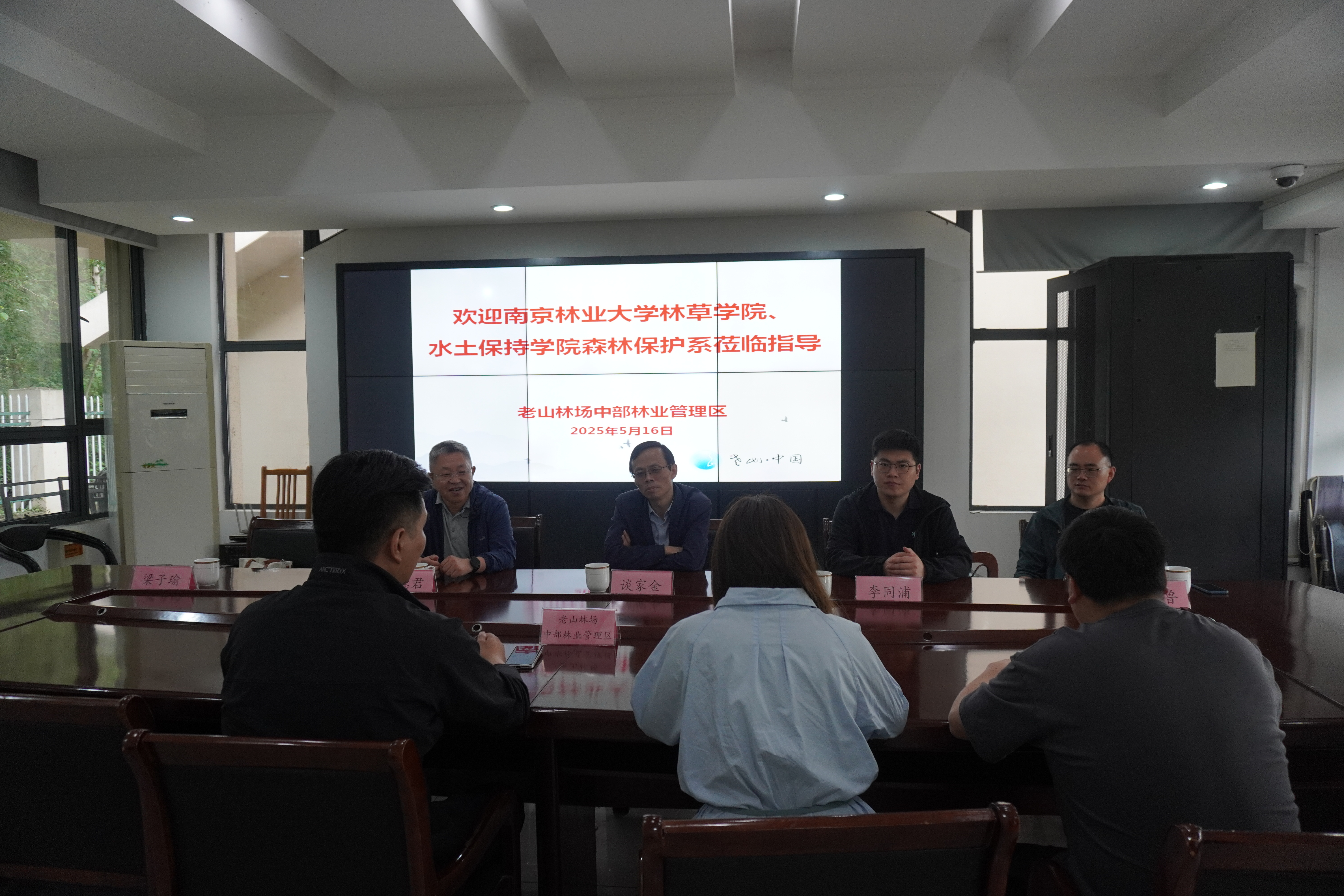 2025年5月16日,自慰影片 森林保护系教师党支部书记谈家金,系主任郝德君,青年教师代鲁鲁、李同浦,自慰影片 团委书记、学工办主任梁子瑜共同前往老山林场对接后期即将开展的党团共建项目。
