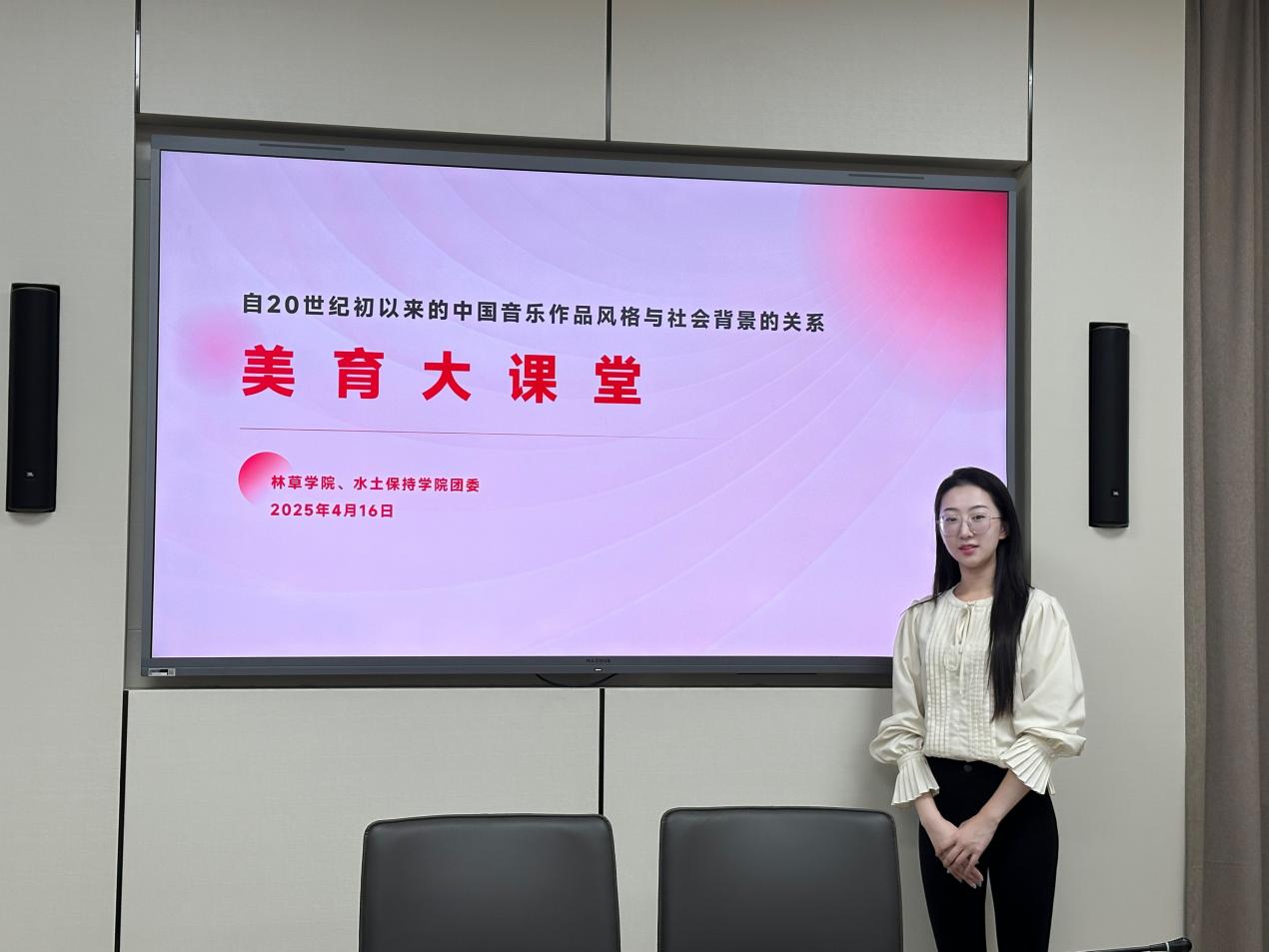 4月17日下午,自慰影片 部分共青团员齐聚林学楼1316会议室,共同聆听22级辅导员韩沛益老师主讲的美育大课堂。韩老师以"20世纪初以来的中国音乐作品风格与社会背景的关系"为主线,带领自慰影片透过音符感悟百年家国情怀,在音乐中厚植文化自信。