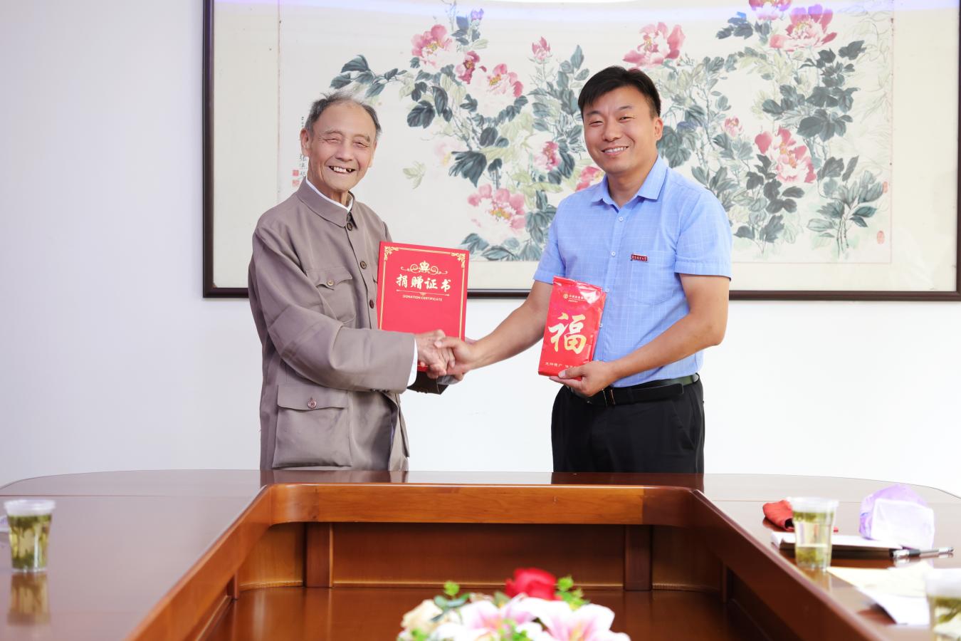 施永钧在交流后郑重地将一份饱含深情的"礼物"交到母校人员手中:沉甸甸的2万元捐款、读书期间获得的数枚运动员奖章和证件、更有他亲笔整理写下的《回忆我的大自慰影片活》、《各种树木花卉的内在寓意》、《慈母家训》等数篇文章,刘子超主任和唐萍书记代表自慰影片 ,向校友颁发捐赠证书,并回赠了刻有南林印记的纪念品。场面其乐融融、温情满满。